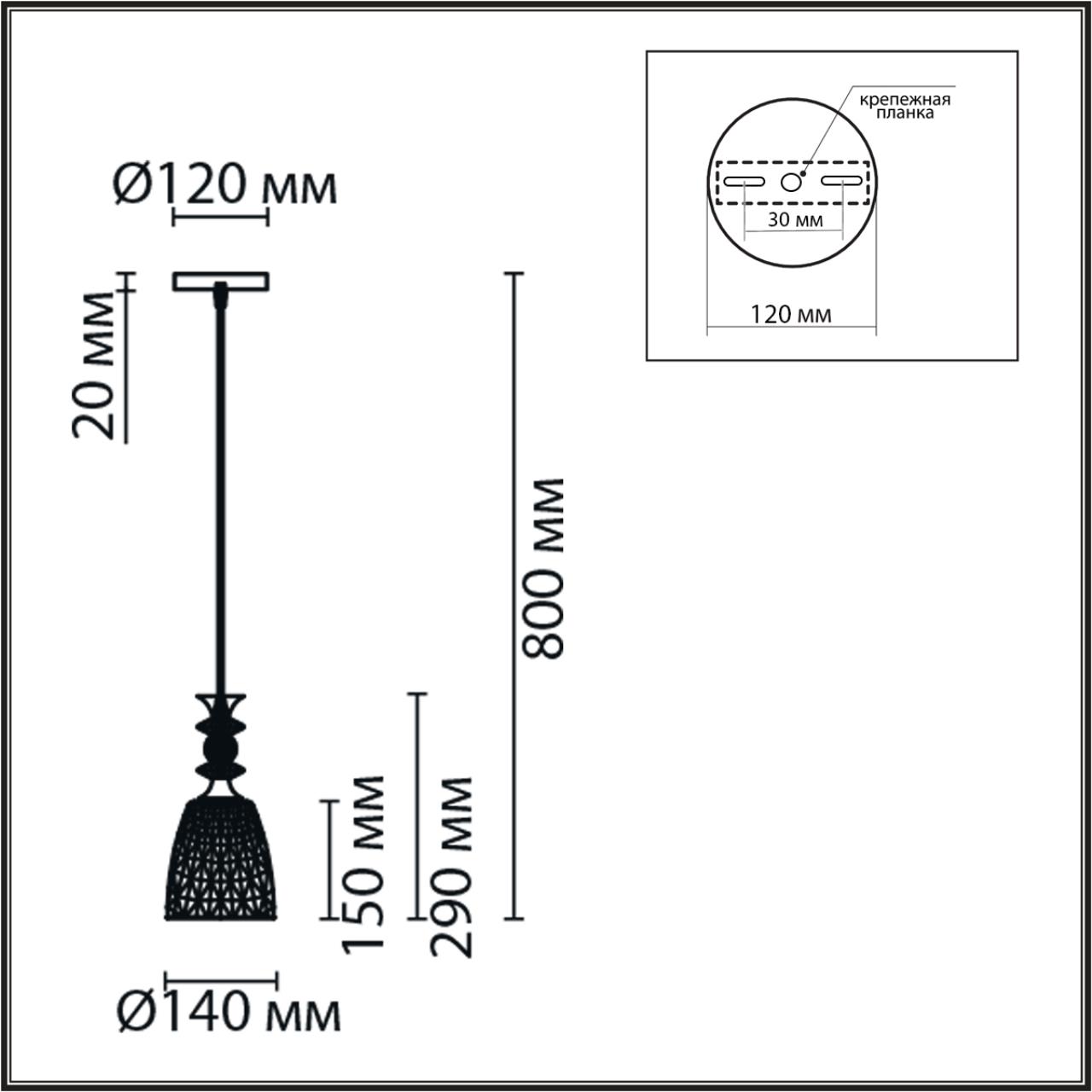 - Форма плафона: Конусный