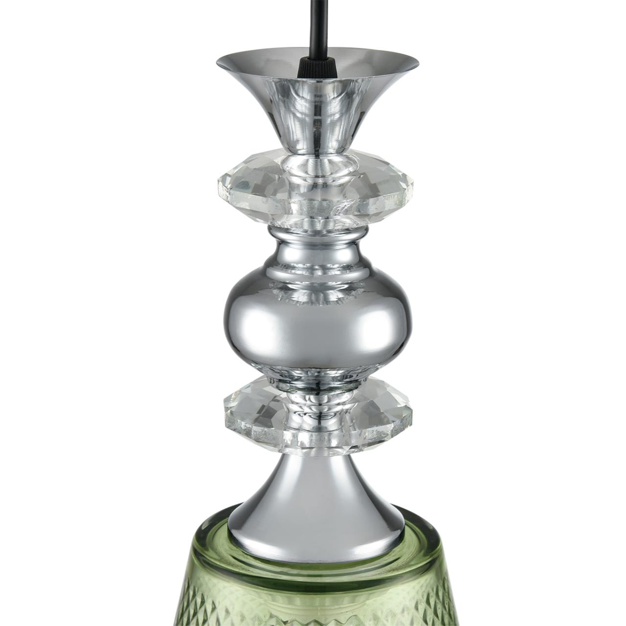 Серия соло-подвесов MANOLA подходит для помещений в классическом стиле. Сложное наборное основание из прозрачных и хромовых элементов украшает светильник. Цветное стекло плафона имеет гладкую наружную поверхность и ребристую внутри. Актуальная цветовая гамма - зеленый, розовый, прозрачный - позволяет добавить цветового акцента в интерьер.