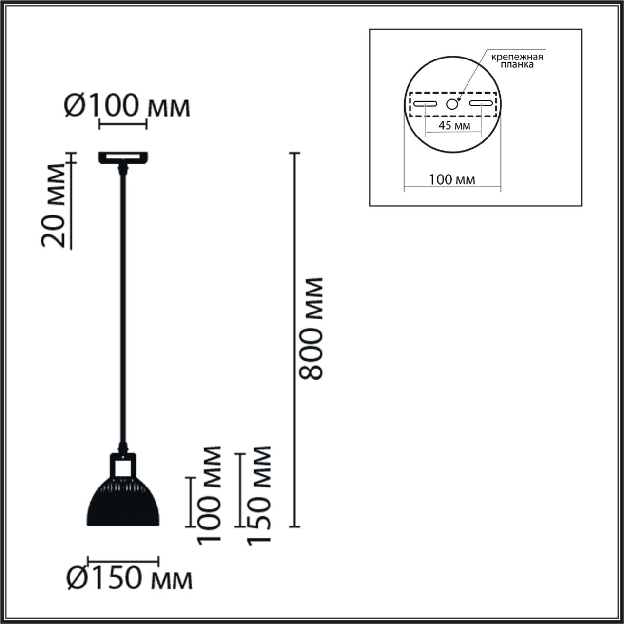 - Форма плафона: Полукруг