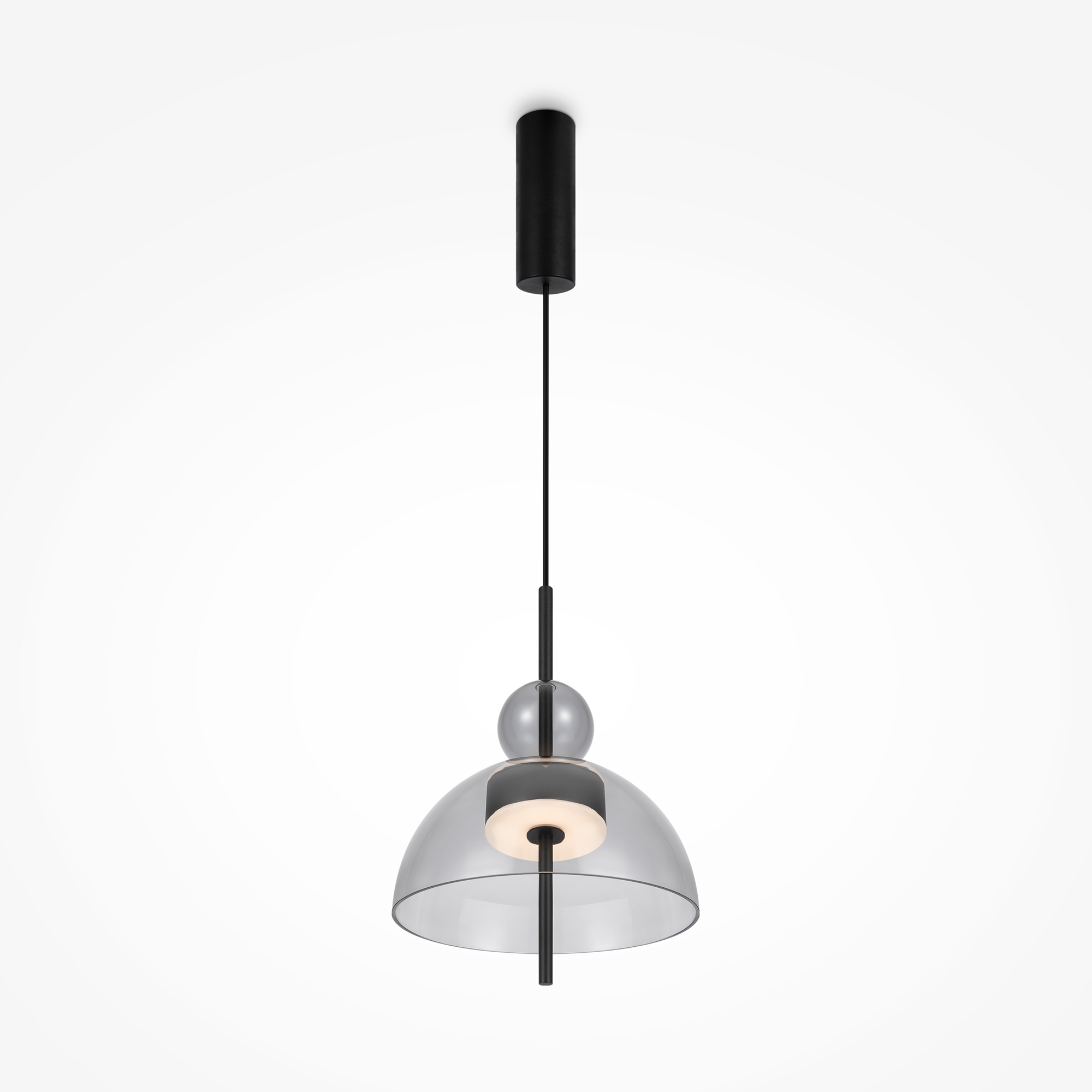 Материал арматуры - металл, цвет - черный. Уникальный дизайн минималистичных плафонов из стекла в трех цветах – дымчатый, прозрачный и серый. LED источник света, цветовая температура - 3000К. Регулируемая длина тросов.