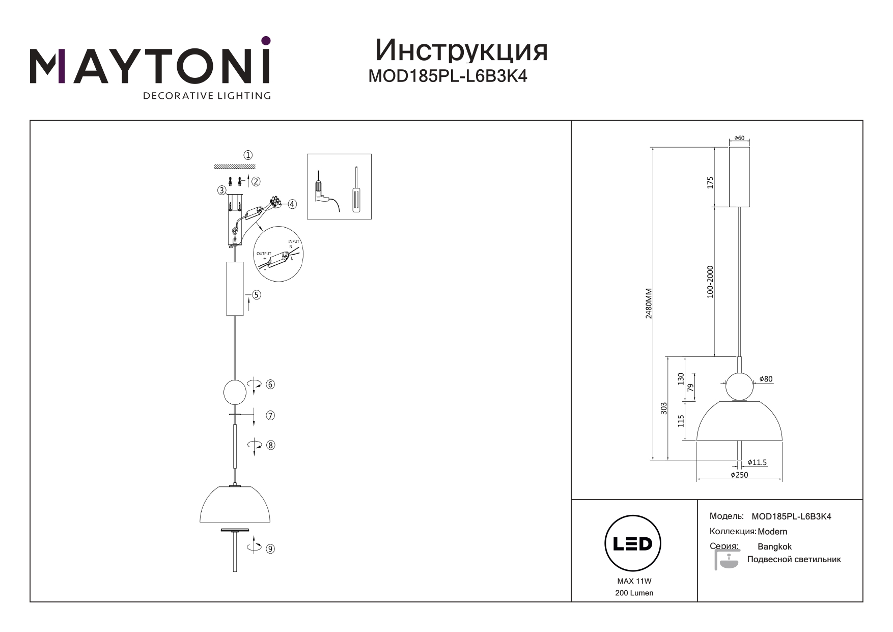Данную модель MOD185PL-L6B3K4 с быстрой доставкой спешите купить по цене 17 990 ₽ в магазине 220svet.ru
