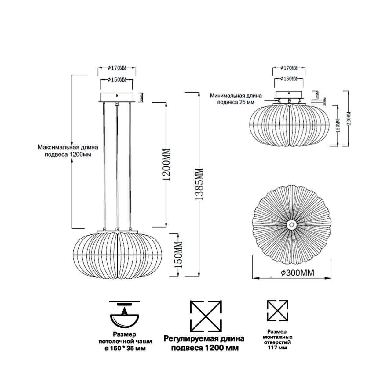 - Высота плафона (абажура): 150