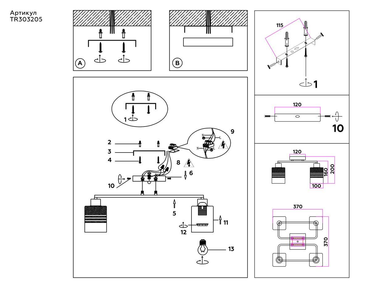 - Место установки: на потолок