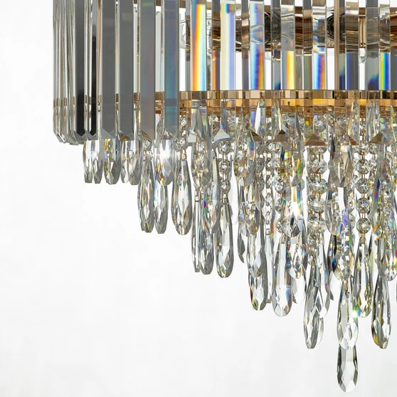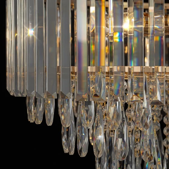 Окунитесь в мир изысканного света с каскадной хрустальной люстрой Citilux LEONNA CL320192 – ярким воплощением элегантности и безупречного вкуса. Благородный золотистый металл гармонично сочетается с прозрачными хрустальными подвесками, играющими в лучах света. Внешние прямоугольные элементы с огранкой «призма» и внутренние каплевидные подвески создают эффект мерцающего водопада, наполняя пространство мягким теплым сиянием и атмосферой уюта.