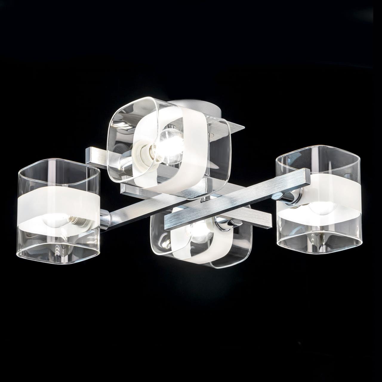 Потолочная люстра CL139240 от производителя Citilux относится к коллекции Вирта в современном стиле. Корпус металлический, цвет алюминий, с декоративными хромированными элементами. Плафоны стеклянные, прозрачные, со стильной белой полосой. В изделии используются 4 лампы с цоколем Е14, форма колбы шарик, максимальной мощностью для ламп накаливания 60Вт (В комплект не входят, приобретаются отдельно). Светильник можно использовать как с одноклавишным, так и с двухклавишным выключателем. Подходит для всех типов потолков, в том числе натяжных. Люстра четырёхрожковая, квадратной формы, размер 40х40см, высота 20см, осветит около 14м , страна бренда Дания . Купить модель CL139240 спешите в интернет магазине 220svet.ru