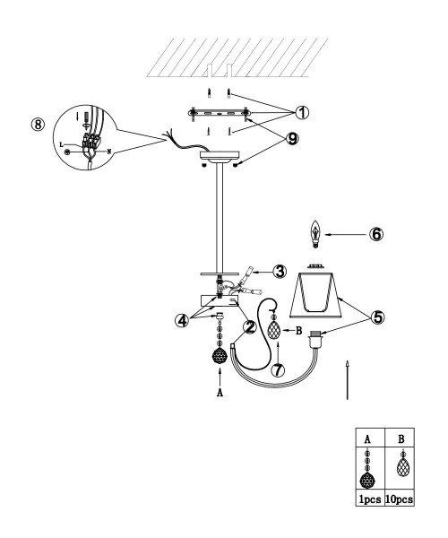 - Направление плафонов: Плафон вверх