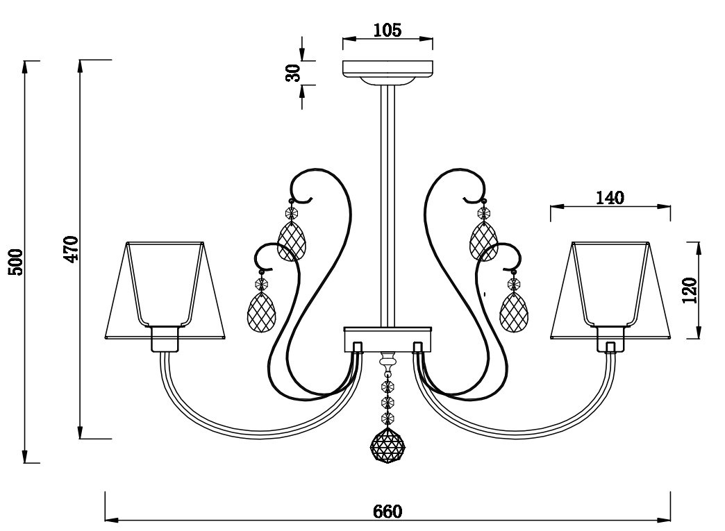 - Высота плафона (абажура): 120