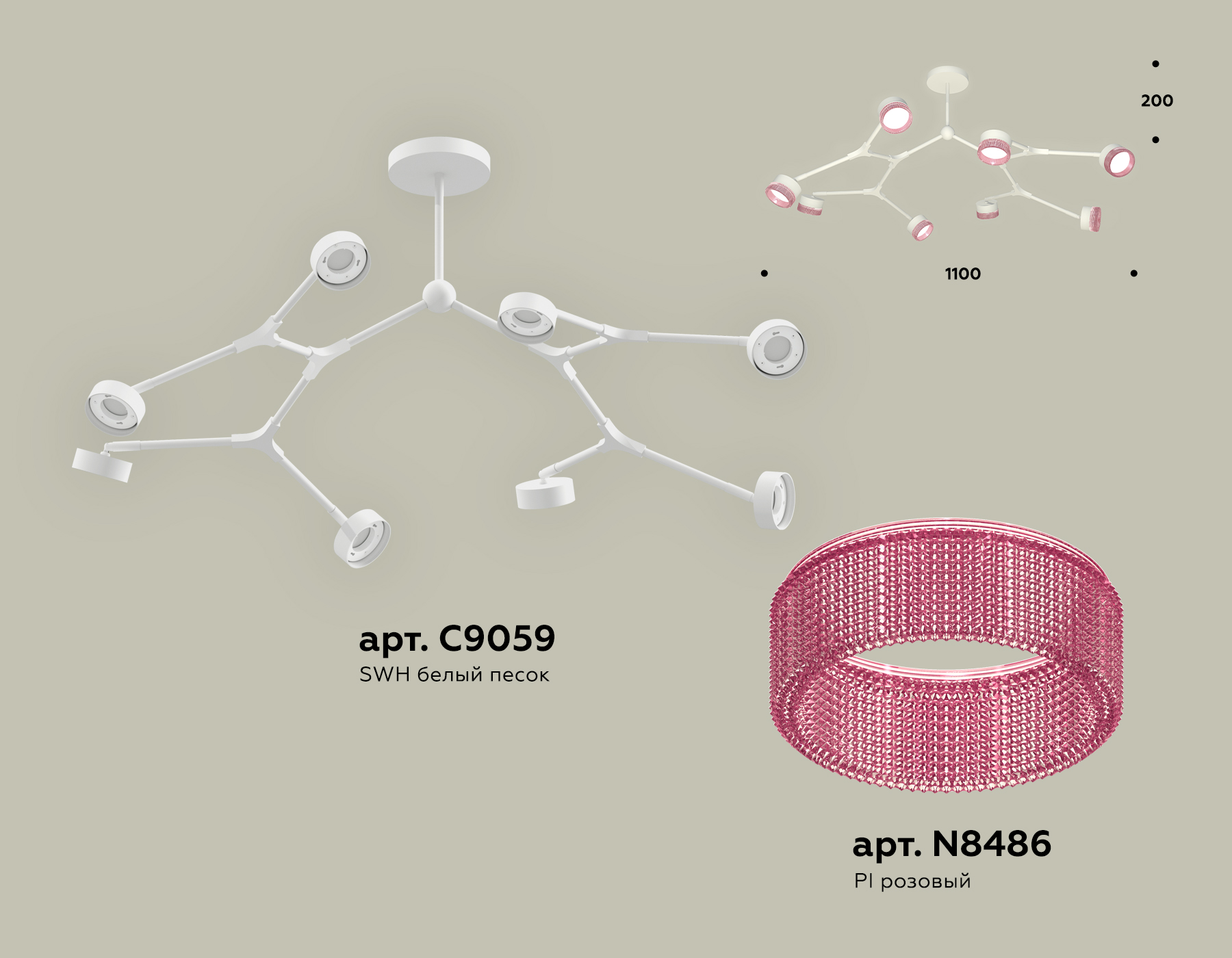 - Цвет плафонов: Белый, Розовый