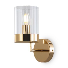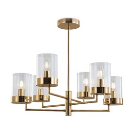 Арматура металл. Цвет арматуры латунь. Плафоны из рельефного стекла в форме цилиндра направлены вверх. Потолочные светильники подойдут для помещений с низкими потолками. Источник света лампа. Цоколь E14.
