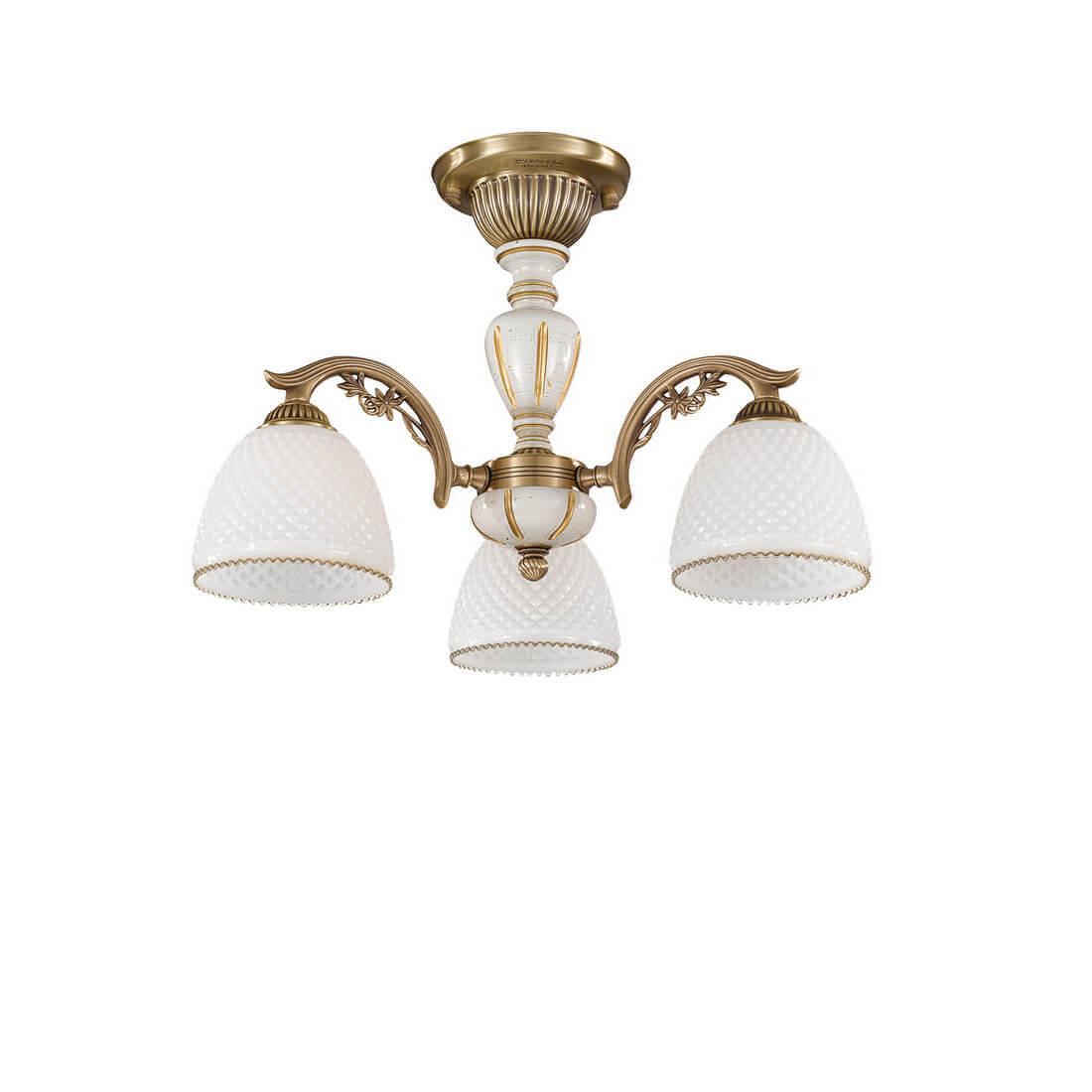 Потолочная люстра Reccagni Angelo PL 8626/3 Итальянского производсва – уникальное сочетание высокого качества и удивительных фактур. Этот светильник Классического стиля хорошо подойдет Для спальни и придаст помещению мягкий и приятный свет. Плафоны белые из стекла. Арматура бронза из металла. Кол-во ламп - 3шт. Общая мощность 180W