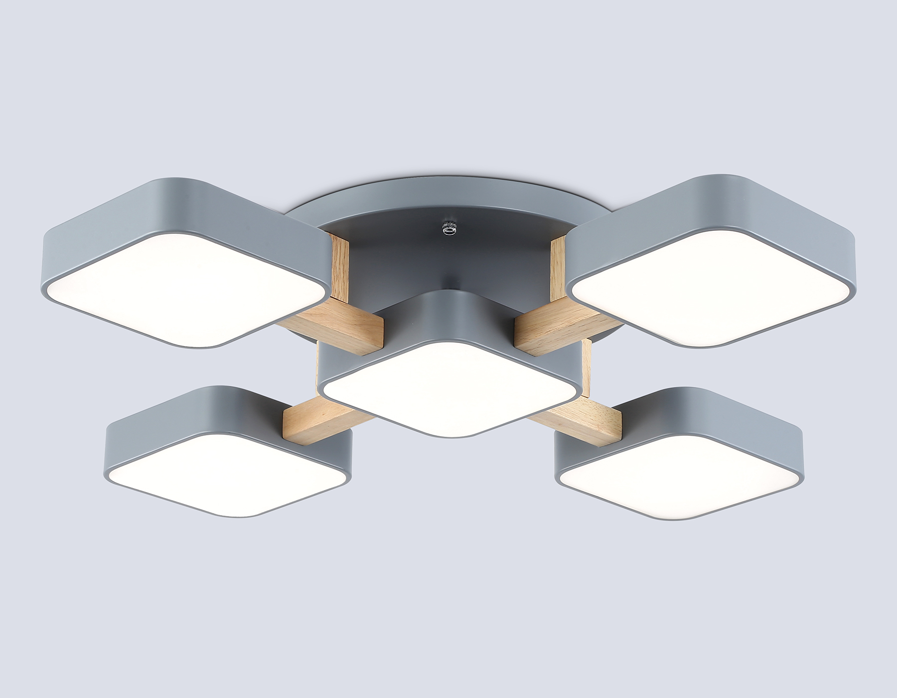 Подвесной светодиодный светильник, коллекция COMFORT. Модель FL4882 представлена в современном стиле хай-тек, техно. Светильник выполнен из металла и дерева. Модель оснащена встроенными светодиодами, благодаря чему вы забудете о замене дополнительных ламп. Данная модель подходит для натяжных потолков и будет прекрасным дополнением в любом помещении. FL4882/5 GR/WD серый/дерево 90W 3000-6000K 675*675*110 (без ПДУ) . Данную модель FL4882/5 GR/WD спешите купить с быстрой доставкой в магазине 220svet.ru