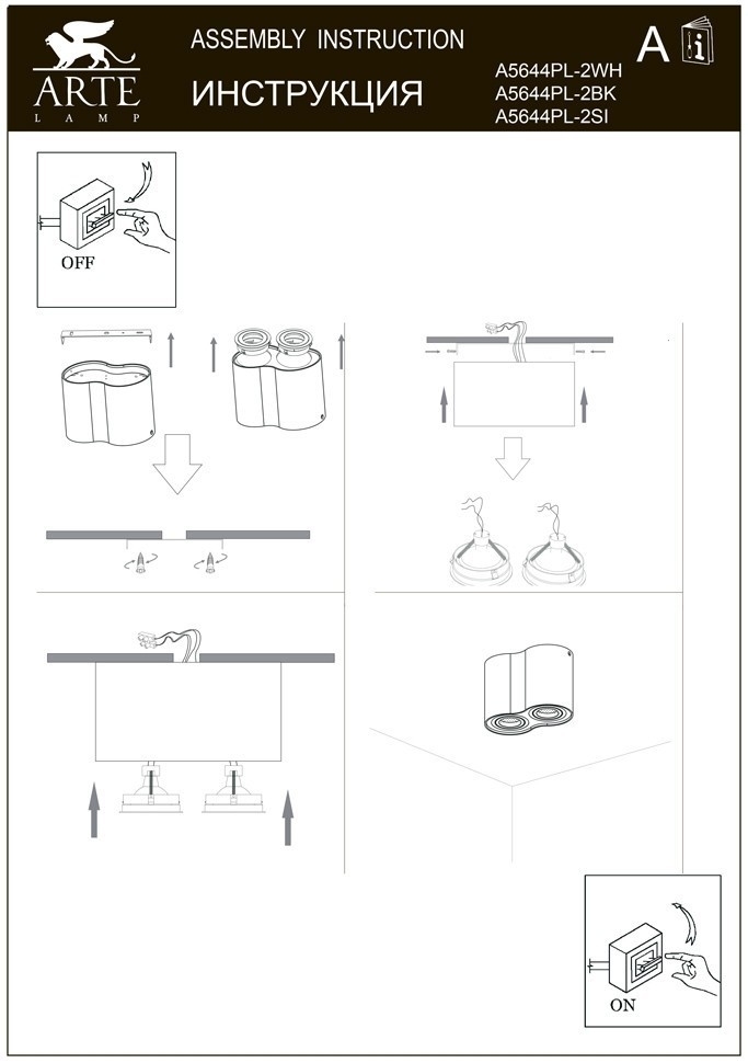 - Направление плафонов: Плафон вниз, В стороны