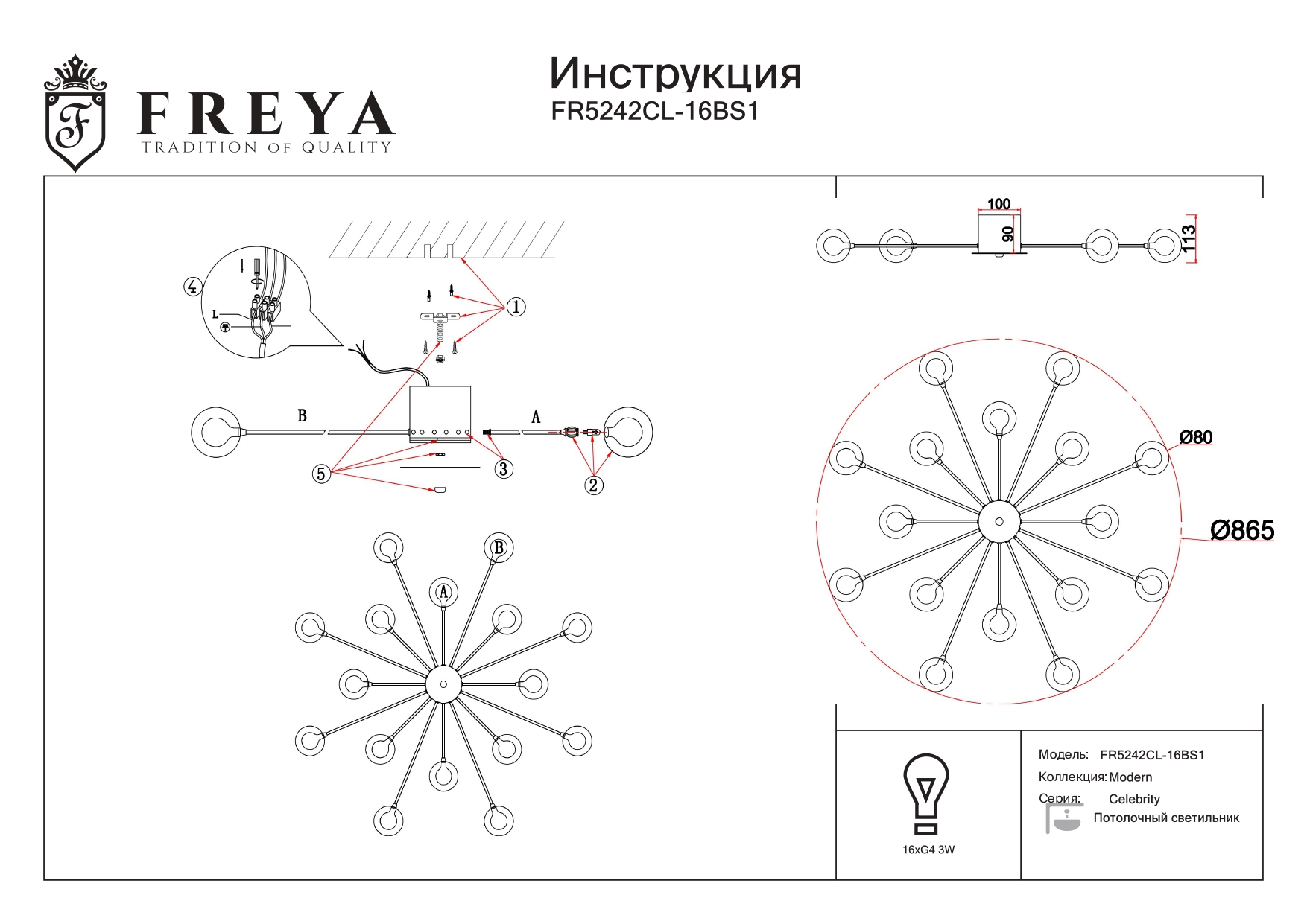 Данную модель FR5242CL-16BS1 с быстрой доставкой спешите купить по цене 25 100 ₽ в магазине 220svet.ru