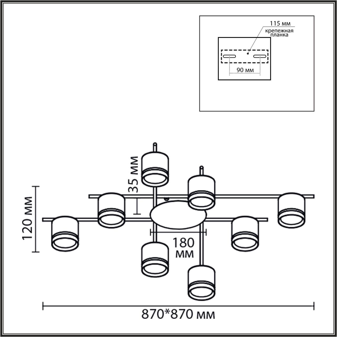 - Количество ламп: 8 шт