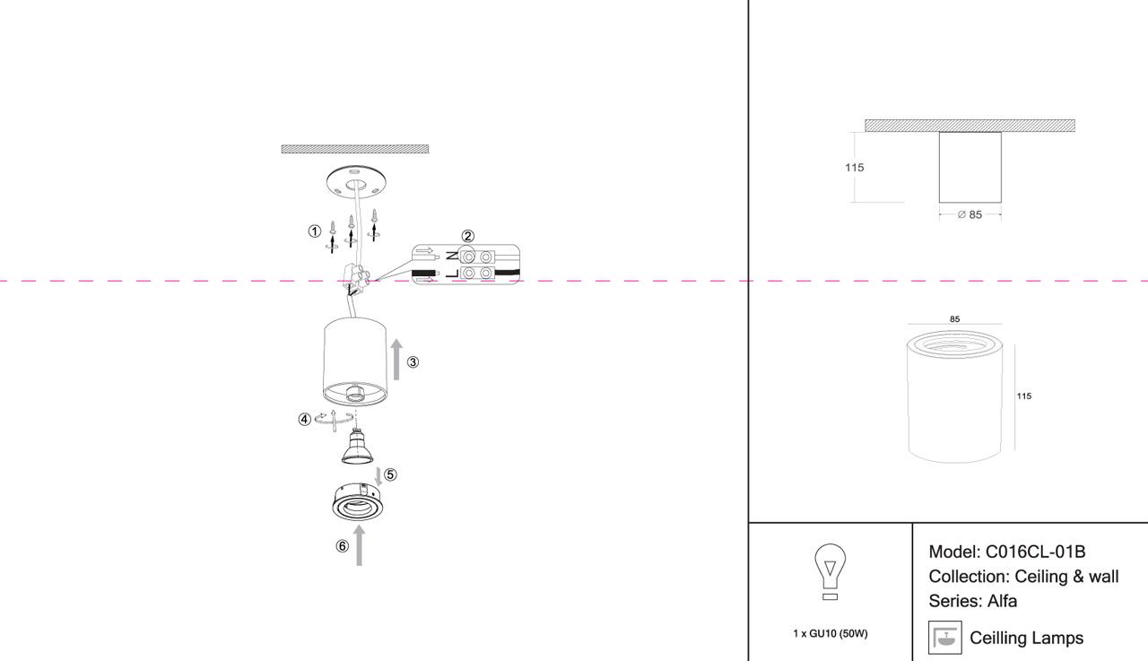 - Место установки: на потолок