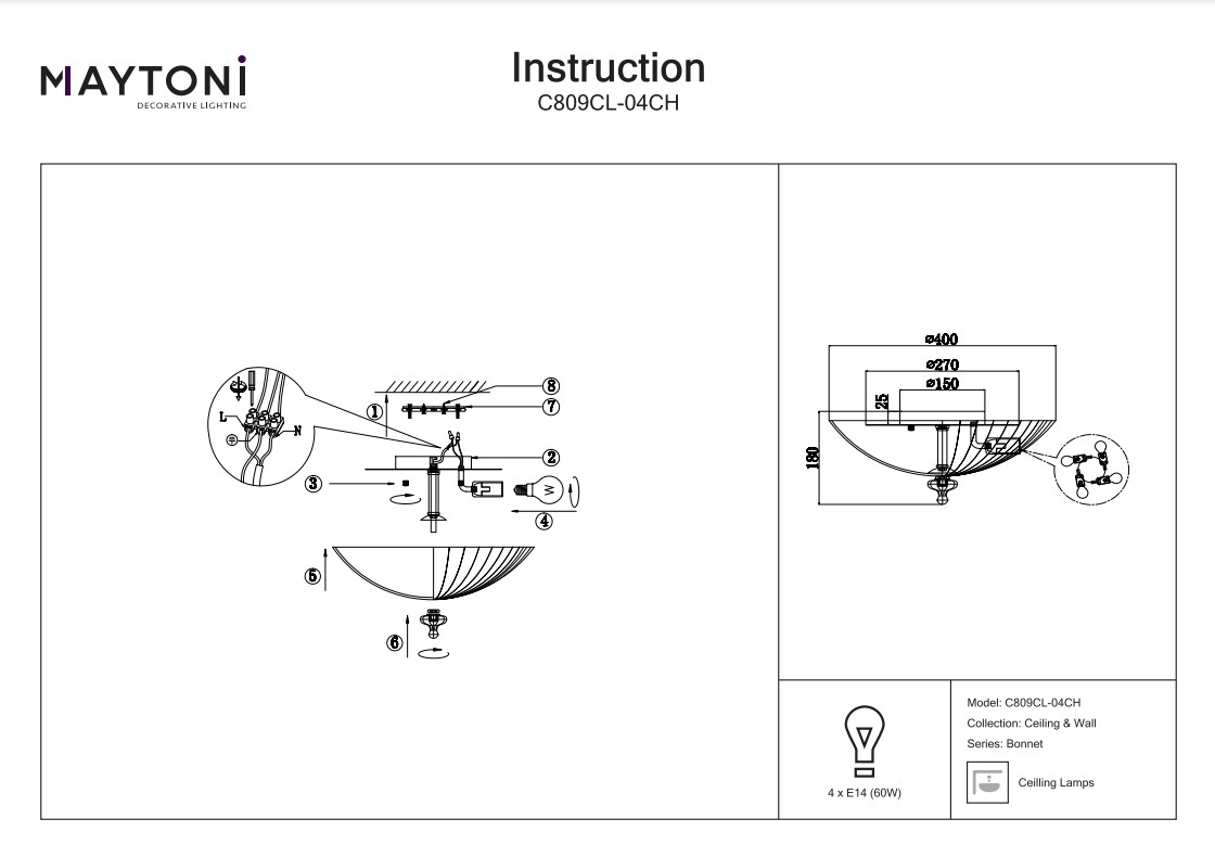 Купить "Потолочный светильник Maytoni Bonnet C809CL-04CH"