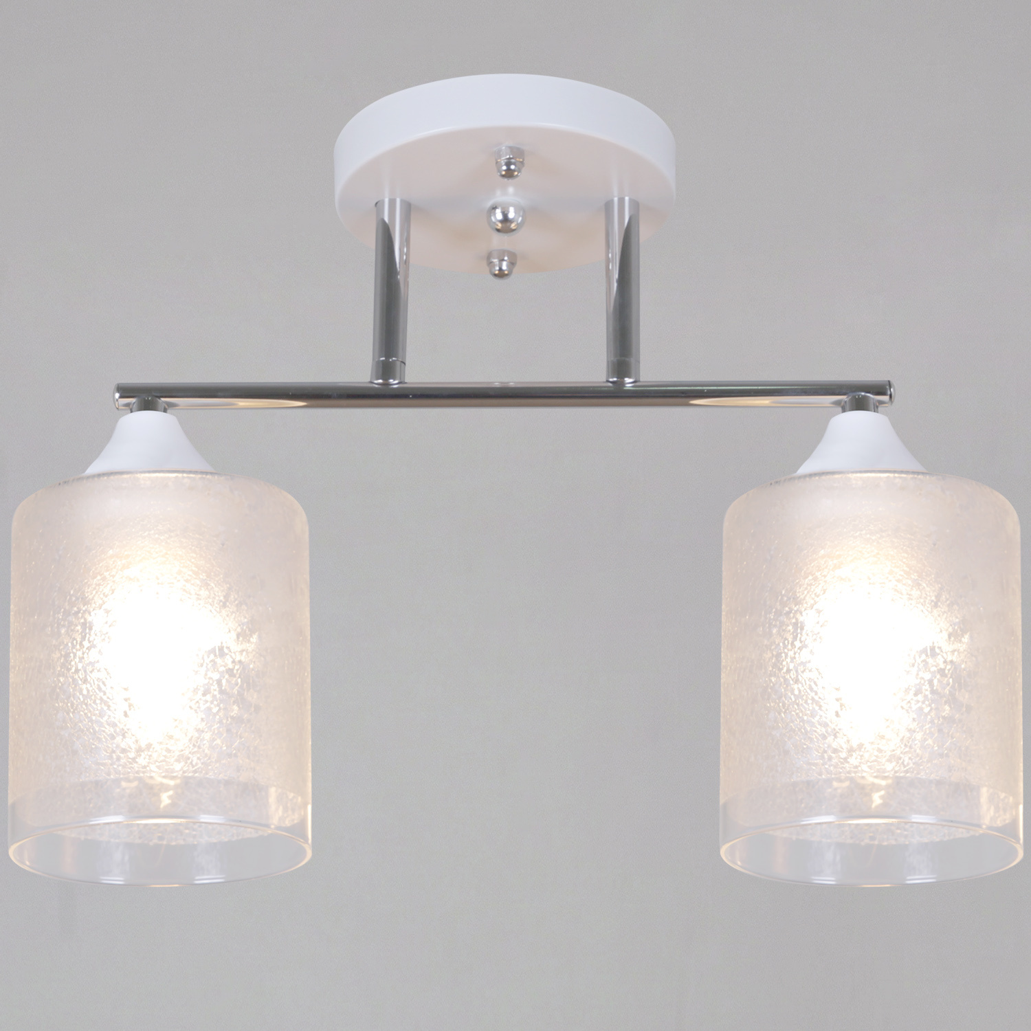 - Цвет плафонов: Белый, Прозрачный, Хром