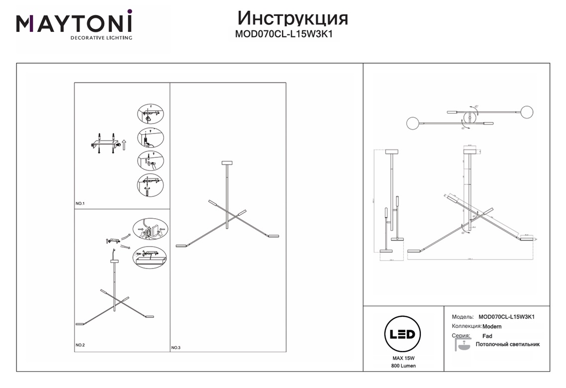Данную модель MOD070CL-L15W3K1 с быстрой доставкой спешите купить по цене 14 279 ₽ в магазине 220svet.ru