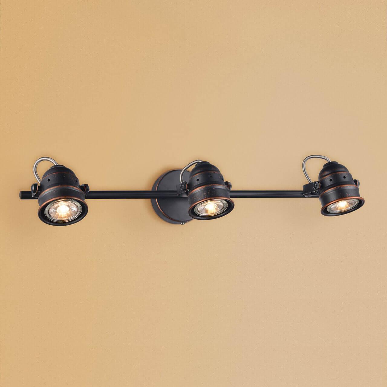 Спот потолочный, поворотный цвета. Модель CL537531, из коллекции Веймар от датского производителя Citilux. Светильник состоит из 3 плафонов, форма которых конус, и выполнены они из металла,  материал арматуры - Металл. Для данного светильника рекомендуется использовать лампочки Галогеновая с цоколем GU10 мощностью 50W.