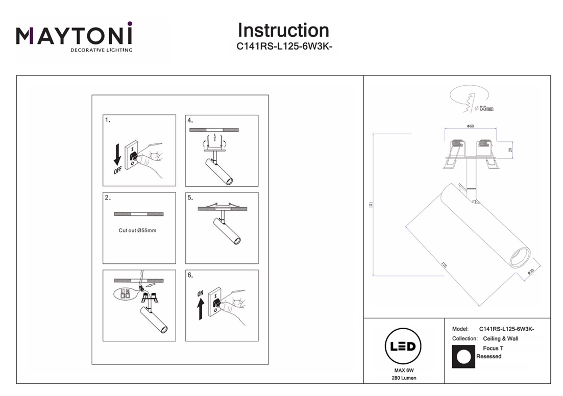 Спот поворотный Maytoni Focus T C141CL-L125-6W3K-BBS — это надёжный и долговечный осветительный прибор, который прослужит вам долгие годы, не теряя своей яркости и качества света.