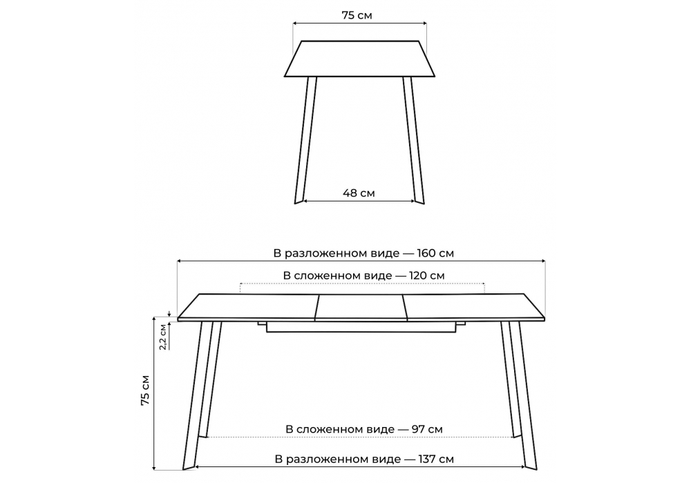 - Длина стола в разложенном виде: 1600