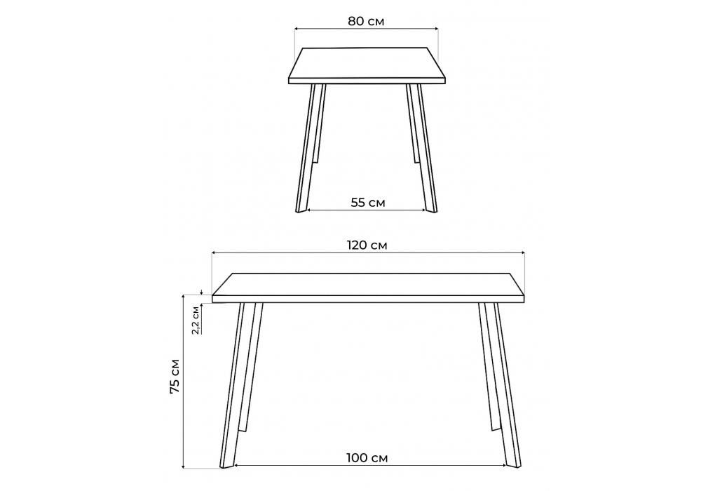 Толщина столешницы: 25 мм. Материал каркаса - металл; Материал столешницы - ЛДСП; Цвет ножек - черный; Ширина - 80; Высота - 75; Длина - 120;
