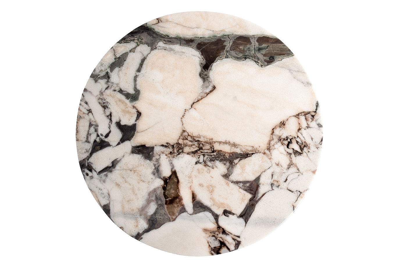 Изысканный журнальный столик с круглой столешницей, выполненной из натурального мрамора светлых оттенков, станет украшением гостиной или холла, оформленного в стиле ар-деко. Уникальный рисунок натурального камня, подобранный искусным мастером, притягивает взгляд игрой цвета и света, превращая этот предмет мебели в настоящее произведение искусства. Оригинальное основание цвета античной бронзы, выполненное из металла, создает ощущение легкости и придает изделию утонченный вид.Столешница вырезана из натурального мрамора! Рисунок и цвет каждой столешницы индивидуален, неповторим и уникален!