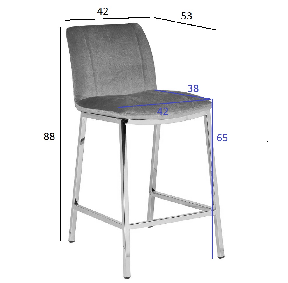 Стильный барный черный стул станет эффектным дополнением барной стойки и привнесет в обстановку нотку современной роскоши. Он прекрасно подойдет для просторной кухни, студии с открытой планировкой, комнаты отдыха. Велюровые барные стулья заметно отличаются от классических моделей за счет своей роскошной обивки. Высокие ножки, устойчивый прочный каркас, удобная стальная ступенька – все эти конструктивные особенности обеспечивают повышенный комфорт. Высокие барные стулья с металлическими ножками универсальны в интерьерном плане – они органично вписываются в стилистику ар-деко, классика, минимализм, лофт, модерн. Габариты сиденья: ширина 42см, глубина 38см, высота от пола 65см