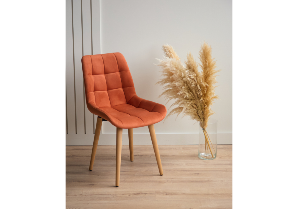 Материал каркаса - дерево; Материал сиденья - велюр; Материал обивки - велюр; Цвет ножек - натуральный; Ширина - 50; Глубина - 60; Высота - 80; Ширина сиденья - 44; Глубина сиденья - 41; Высота сиденья - 48;