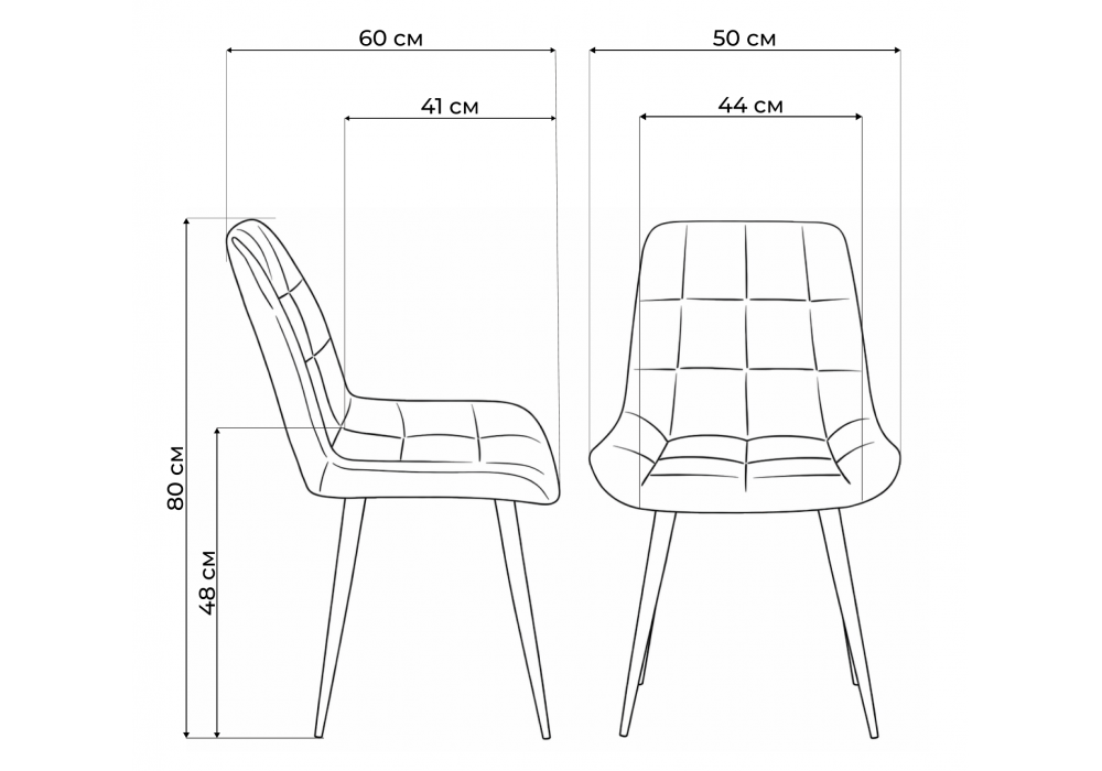 Материал каркаса - металл; Материал сиденья - велюр; Материал обивки - велюр; Цвет ножек - белый; Ширина - 50; Глубина - 60; Высота - 80; Ширина сиденья - 44; Глубина сиденья - 41; Высота сиденья - 48;