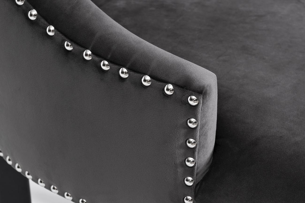 Любая кухня или столовая не может существовать без обеденного стола и стульев, за которыми собирается вся семья, друзья или знакомые. Именно поэтому стоит задуматься о том, чтобы купить стул на заказ. Так появится возможность найти что-то оригинальное и улучшить свой интерьер. Идеальный вариант – это обеденный мягкий стул со спинкой, поскольку в первую очередь мебель должна быть комфортной. Стул с серым велюром смотрится стильно и богато. Выбрав свой цвет обивки – вы получите оригинальное исполнение классической модели, идеально дополняющей ваш интерьер. Габариты стула: высота-980мм, глубина-650мм, ширина-570мм. Габариты сиденья: ширина -570мм, глубина- 460мм, высота - 500мм. В стандартном исполнении: обивка - велюр Riviera 96, цвет ножек - 4, гвозди - хром, маленькие