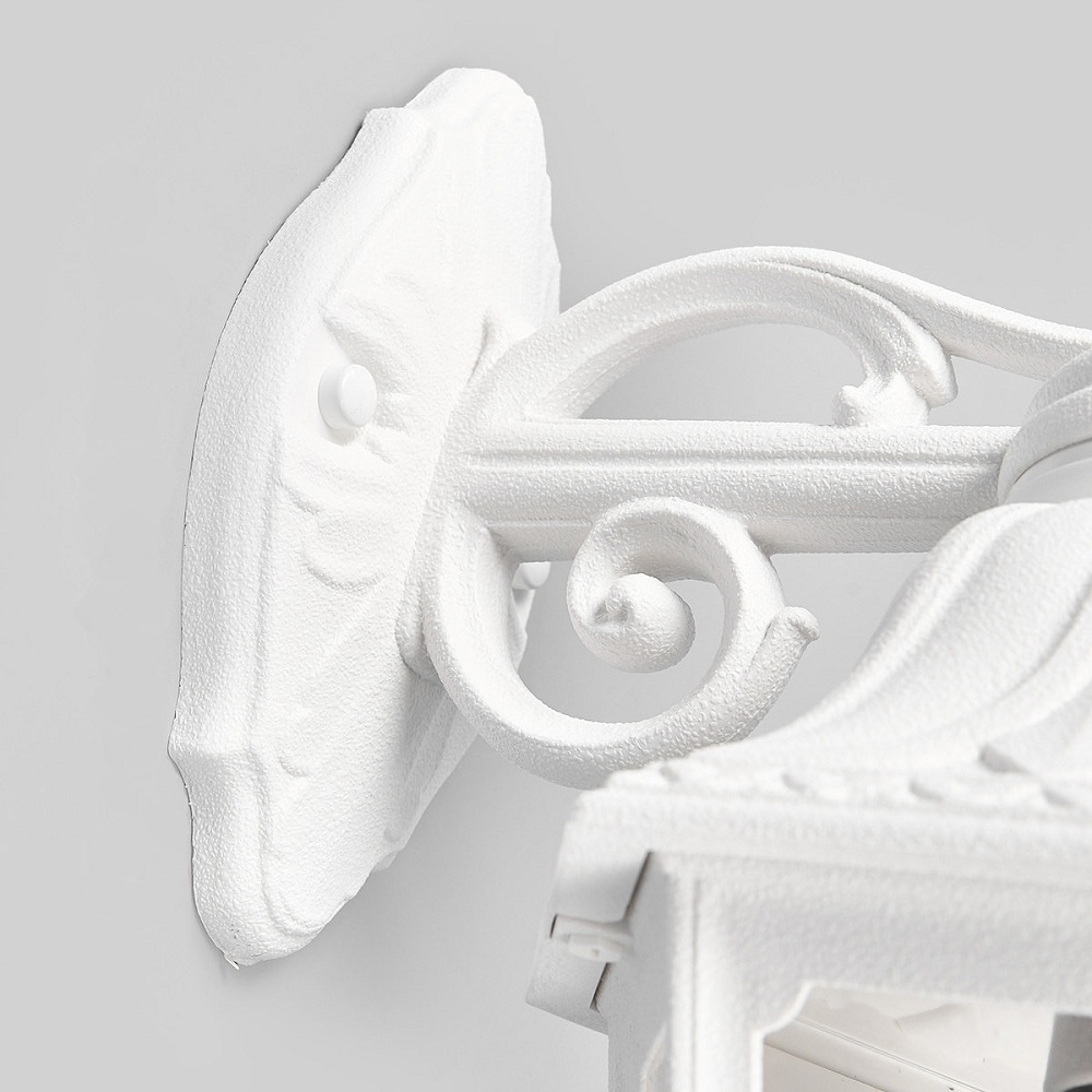 Светильники уличные настенные FUMAGALLI серии RUT, модель RUT/BISSO DN. Консольный уличный светильник для монтажа на стену. Настенный кронштейн BISSO малого размера и светильник RUT установленный "вниз". Используются для фасадного и архитектурного освещения в стиле "классика". Место установки уличных светильников - фасады, колонны и другие вертикальные поверхности исторических зданий, котеджей, загородных домов, церквей, а так же, другие места где требуется и возможна установка фонарей. Изготовлены в Италии, по уникальным технологиям "FUMAGALLI" из современного композитного полимера RESIN. Этот материал в 5 раз прочнее металла, не ржавеет, не окисляется, не выгорает на солнце, его не нужно красить. Все светильники пыле-влаго защищены по стандарту IP55 (Пылезащищенные, защита от водяных струй с любого направления). Рассеиватель выполнен из антивандального, не мутнеющего и не горючего PMMA (ПолиМетилМетаАкрилат). Срок службы светильника - не менее 20 лет. Температура использования от -60 до +90. В серии RUT есть фонари в настенном (BISSO/ RUT, OFIR/ RUT, MIRRA/ RUT, PORPORA/ RUT) подвесном (SICHEM/ RUT) и наземном исполнении (MINILOT/ RUT, MIZAR.R/ RUT, IAFAET.R/ RUT, ALOE.R/ RUT, ARTU/ RUT, GIGI/ RUT, RICU/ RUT, RICU/ISSO/ RUT 2L, NEBO/ RUT, NEBO OFIR/ RUT 2L, NEBO OFIR/ RUT 3L) со столбами разной высоты, с разным количеством и конфигурацией голов. Консоли настенных фонарей и кронштейны светильников на столбах освщения могут устанавливаться вверх/вниз. Столбы выше 150 см имеют в основе мощную стальную трубу с двойной оцинковкой. При заказе требуется выбрать цвет корпуса, цвет плафона и тип патрона. По стилю и дизайну серия уличных светильников RUT похожа на светильники малого размера серии ANNA и на светильники большого размера серии NOEMI. По размеру RUT относится к средним светильникам как серия CEFA, SALEM и GLOBE 300.