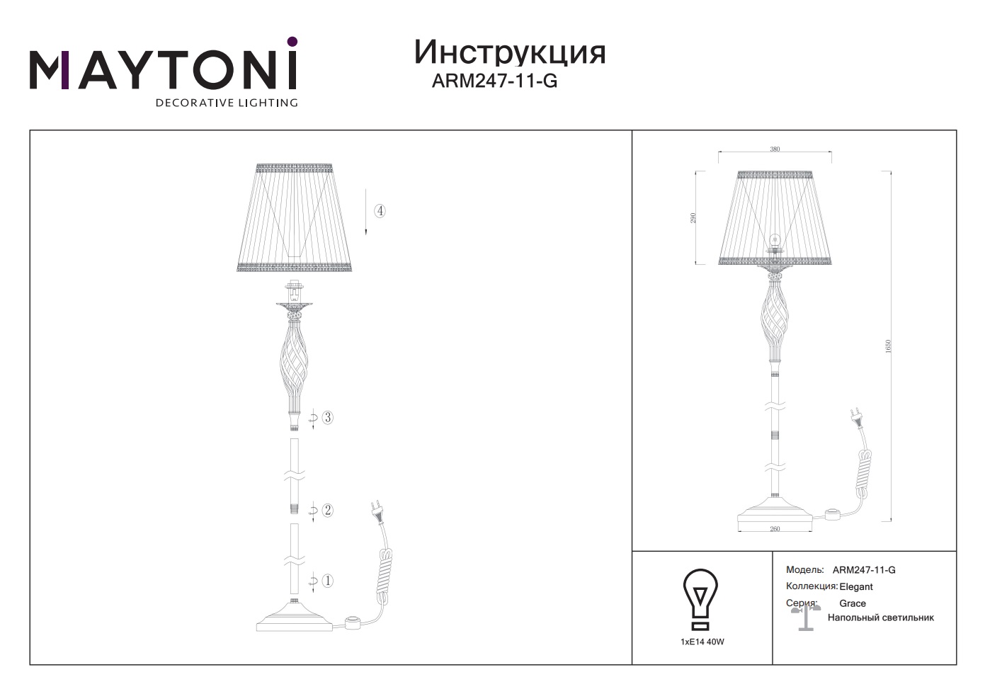 Купить "Торшер Maytoni Grace ARM247-11-G"