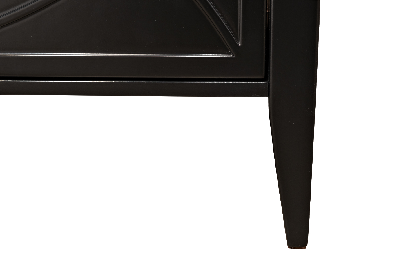 Дизайнерская тумбочка в стиле ар-деко - авторская разработка студии Garda Decor. Черный матовый фасад украшен объемным дугообразным декором и широкими рельефными ручками золотого цвета (глянцевое золото). Два выдвижных ящика прекрасно подойдут для домашней аптечки, хранения белья, щеток, косметики и прочих мелочей. На просторной столешнице будет прекрасно выглядеть одна из настольных ламп в стилистике ар-деко, ассортимент которых широко представлен на нашем сайте. Тонкие ножки придают конструкции легкость и изящество. Эксклюзивная тумбочка станет гармоничным дополнением интерьера спальни, гостиной или прихожей.