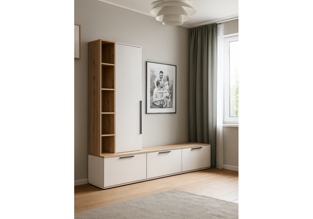 Купить "ТВ-тумба Woodville Филеста белый / дуб вотан 664895"