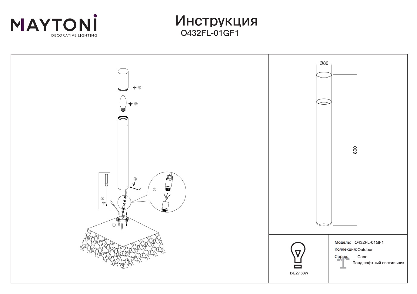 Уличный ландшафтный светильник Amas O432FL-01GF1 идеально подходит для установки на даче, в саду или возле дома. Он станет стильным акцентом в вашем экстерьере и обеспечит качественное освещение территории.