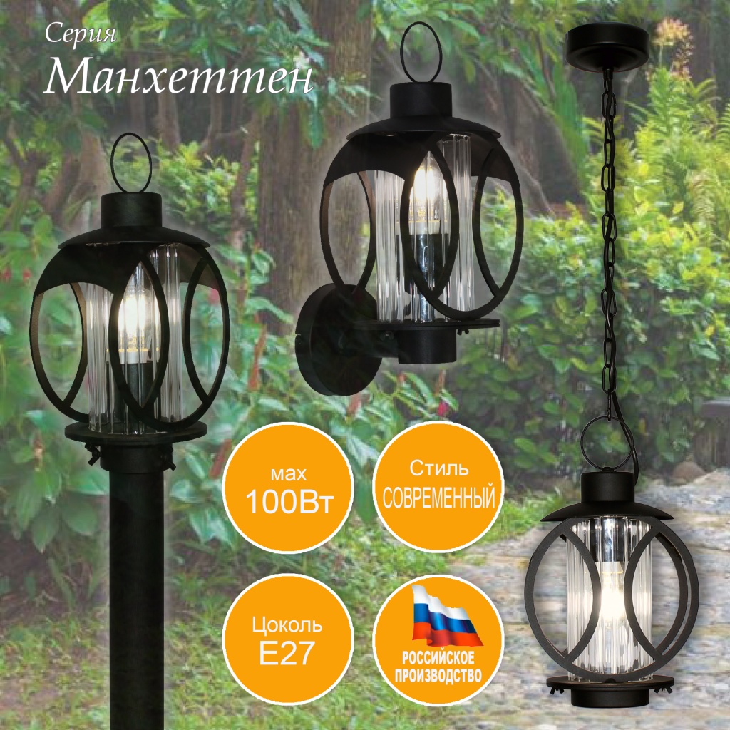 Уличный светильник на столб из коллекции «Манхеттен» IP54- это прекрасное сочетание дизайна и функциональности. Он воплотил в себе изысканный стиль, высокое качество изготовления. обеспечивающее устойчивость к воздействию внешней среды. Светильник оснащен стандартным цоколем Е 27, который позволит использовать сменные лампы различных типов в качестве источника света. Коллекция светильников "Манхеттен" состоит не только из торшерного светильника, но также присутствуют бра и подвес, что поможет создать целые световые композиции и выделить самую привлекательную часть освещаемой территории и строений в едином стиле. Рассеиватель светильника выполнен из рифленого боросиликатного стекла, и прекрасно рассеивает свет, что не только функционально, но в целом создает уют в экстерьере. Основной цвет изделия, классический черный.