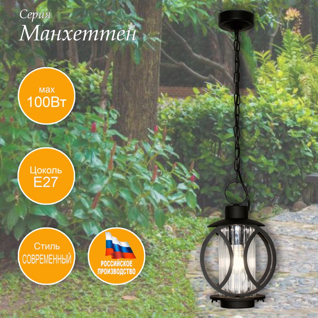 Уличный подвесной светильник Манхеттен черный Элетех 1030480549 в Иваново