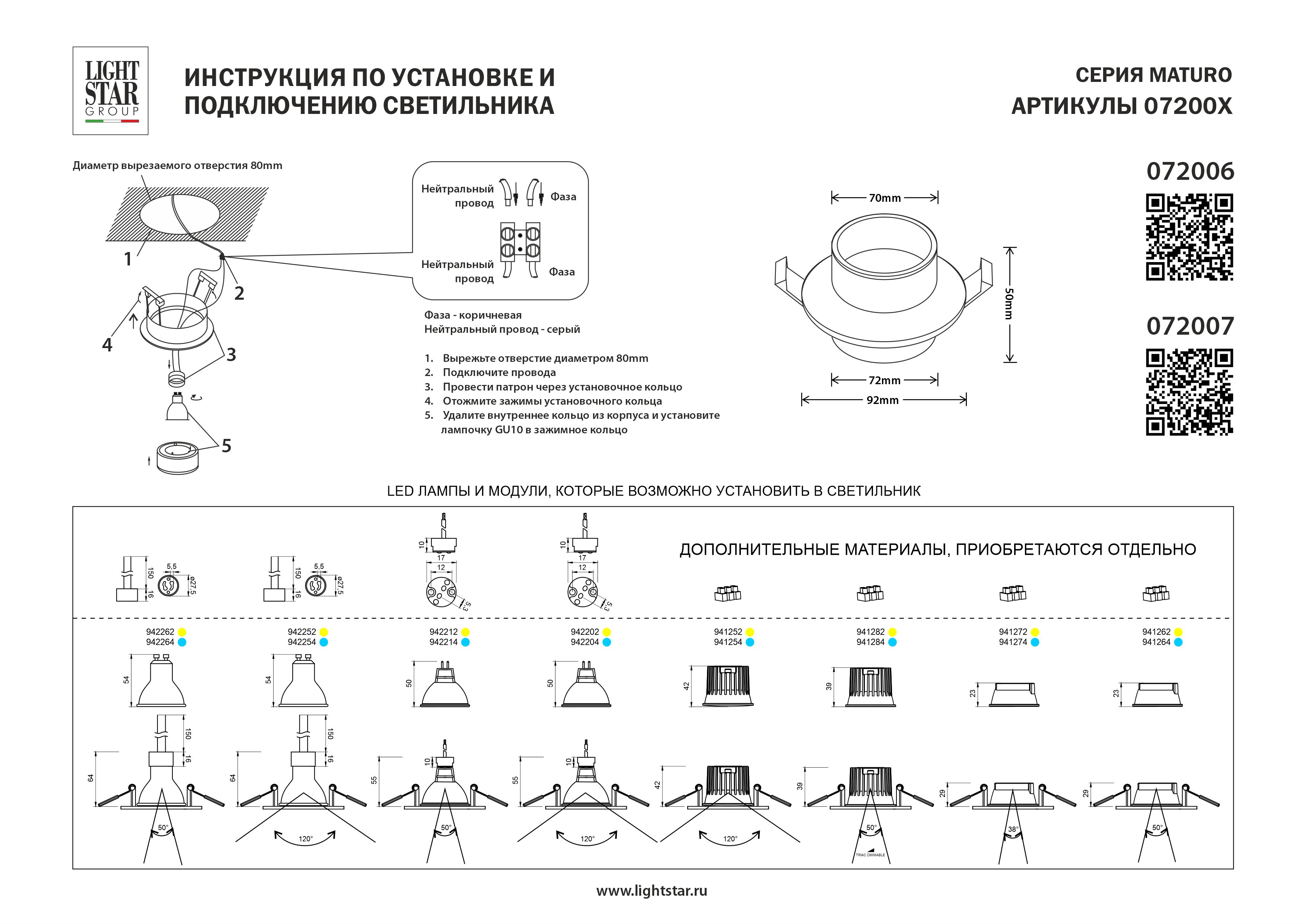 Купить "Встраиваемый светильник Lightstar Maturo 072007"