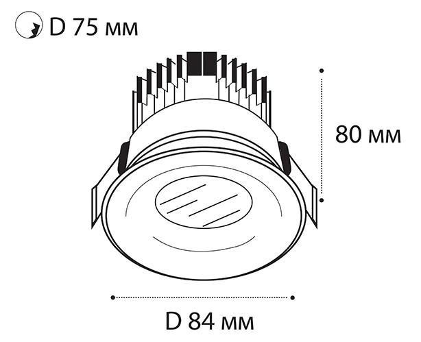 - Диаметр врезного отверстия: 75 мм (7.5 см)
