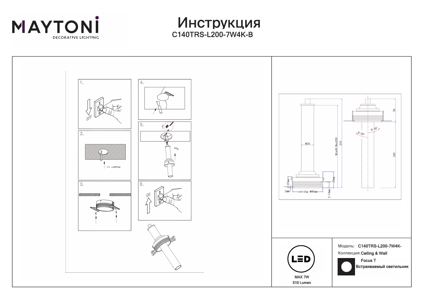 Все характеристики C140TRS-L200-7W4K-B