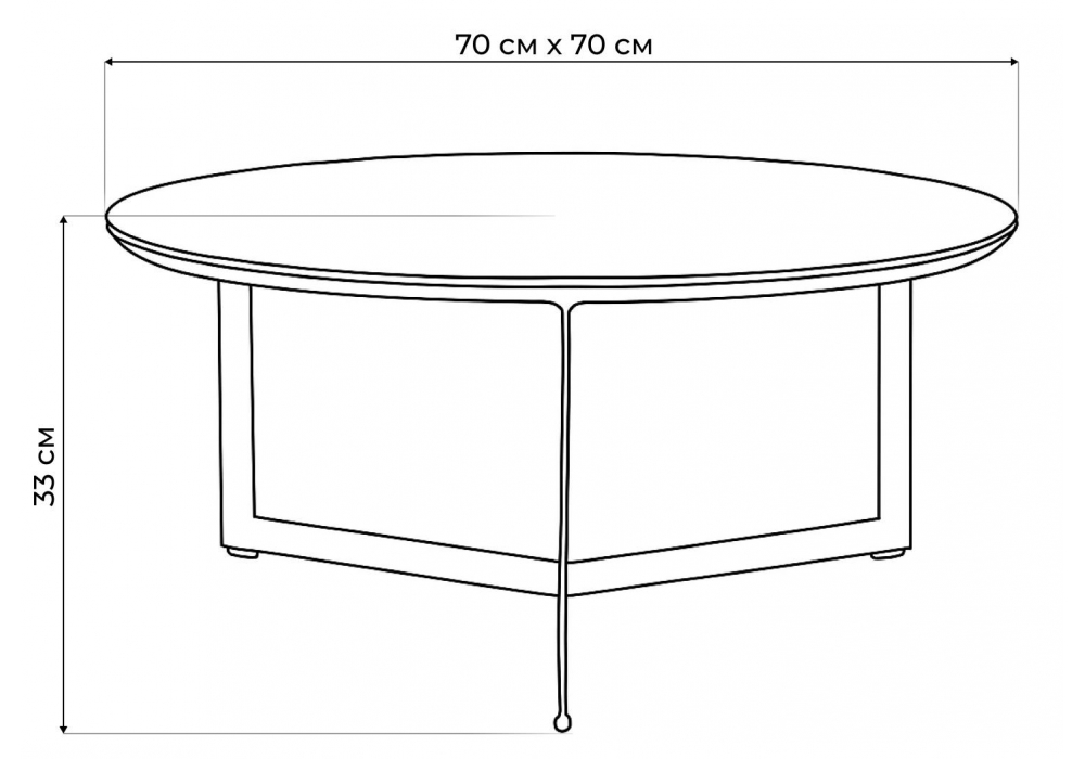 Материал каркаса - металл; Материал столешницы - Стекло; Ширина - 70; Высота - 33; Длина - 70;